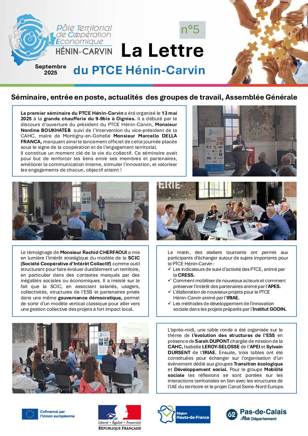 2025 Notre actualité Le premier séminaire du PTCE Hénin-Carvin Rencontres nationales des PTCE 2024 1er Comité Stratégique du PTCE Hénin Carvin Nos newsletters